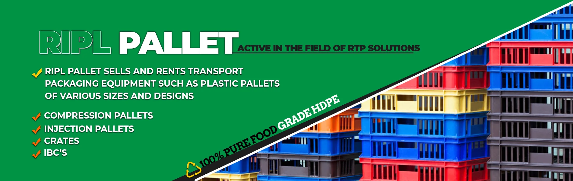 RIPL offers a full range of Plastic Pallets, which can match most industry requirements. RIPL offers a full range of Plastic Pallets, which can match most industry requirements.